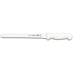 Faca para fiambres 12" Qualidade e durabilidade para profissionais que trabalham muito. Com tecnologia de ponta, as facas profissionais estão sempre preparadas para entrar em ação e fazer bonito com qualquer ingrediente. Eficiência é o que não falta. A altíssima qualidade das lâminas, resultado do tratamento térmico composto por têmpera (aquecimento da lâmina), subzero (resfriamento de 50 a 196 graus negativos) e revenimento (aumento da elasticidade do aço) garante vida longa e eficiente. A anatomia e ergonomia do cabo de polipropileno texturizado, injetado diretamente sobre a espiga da lâmina, oferecem segurança e conforto durante o manuseio. A proteção antimicrobiana inibe e reduz o crescimento de bactérias e fungos. Essa tecnologia é incorporada durante o processo de fabrição do cabo e dura por toda vida útil do produto, mas não não elimina a necessidade de lavá-los. Lâmina de aço inox DIN 1.4110.Cabo de polipropileno. Cuidados com o produto USO SEGURO E ADEQUADO:Produtos cortantes e perfurantes, tenha cuidado ao manusear e mantenha fora do alcance das crianças.Para maior durabilidade dos produtos recomenda-se secar bem depois de lavar, mesmo após lavagem em máquina de lavar.Para descarte dos produtos e embalagens sigas as orientações de reciclagem vigentes. Garantia Contra defeitos de fabricaçãoContra defeitos de fabricação