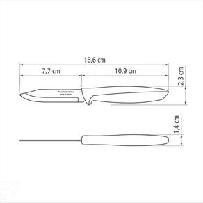 Para levar mais conforto e praticidade para sua cozinha, a Faca para Legumes e Frutas Tramontina Plenus com Lâmina em Aço Inox e Cabo de Polipropileno Preto 3 polegadas da Linha Plenus é a melhor escolha. Produzida com lâmina em aço inox e cabo em polipropileno na cor preta, ela auxilia você na preparação dos seus melhores pratos. Com três polegadas, ela é ideal para cortar, descascar e fazer cortes delicados em legumes e frutas. Ela é uma peça indispensável na sua cozinha! Orientações Ideal para cortar, descascar e fazer cortes delicados.A lâmina de aço inox têm maior durabilidade do fio devido ao tratamento térmico. O cabo de polipropileno possui maior resistência e durabilidade. Pode ir à máquina de lavar louças facilitando seu dia a dia. Características Gerais EAN13 7891112224971 DUN14 17891112224978 NCM 8211.92.10 Peso Líquido 0,0250 kg. Peso Bruto 0,0350 kg. Metragem 0,000208 m³. Dimensões Embalagem (Compr. X Larg. X Alt.) 15x 55x 252 mm. Dimensões Produto (Compr. X Larg. X Alt.) 186x 23x 14 mm. Cor 1 000000 Hexa Observações Antes da primeira utilização, lave bem a peça e seque-a. Produto cortante e perfurante: tenha cuidado ao manusear e mantenha fora do alcance das crianças. Para maior durabilidade do produto recomenda-se secar bem antes de guardar, mesmo após lavagem em máquina. Recomenda-se o uso de tábuas de polipropileno ou madeira da Tramontina para maior durabilidade do fio da faca. Não é indicado o uso da faca para o corte de alimentos congelados. Mantenha sempre sua faca afiada utilizando os afiadores da Tramontina.Para descarte dos produtos e embalagens siga as orientações de reciclagem vigentes.