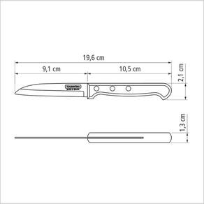 E, para tornar a sua cozinha ainda mais eficiente e prática, você pode contar com a Faca para Legumes e Frutas Tramontina Polywood com Lâmina em Aço Inox e Cabo de Madeira Castanho 3 polegadas da Linha Polywood. Ela irá permitir cortar e descascar as frutas e verduras com mais facilidade, seja para uma deliciosa torta de maçã ou até mesmo geleias. Com uma lâmina em aço inox que recebe tratamento térmico, a faca garante resistência e durabilidade com o uso diário. O seu cabo em madeira tratada em Polywood, proporciona resistência à impactos e altas temperaturas e conta com beleza e conforto durante o manuseio. Invista na sua casa, tenha facas Tramontina! Orientações Ideal para cortar, descascar e fazer cortes delicados.A lâmina de aço inox têm maior durabilidade do fio devido ao tratamento térmico. O cabo de madeira tratada Polywood é resistentes à impactos e alta temperaturas garantindo maior resistência e durabilidade. Rebites de alumínio. Pode ir à máquina de lavar louças facilitando seu dia a dia. Características Gerais EAN13 7891112108295 DUN14 17891112108292 NCM 8211.92.10 Peso Líquido 0,0340 kg. Peso Bruto 0,0450 kg. Metragem 0,000191 m³. Dimensões Embalagem (Compr. X Larg. X Alt.) 55x 15x 232 mm. Dimensões Produto (Compr. X Larg. X Alt.) 196x 21x 13 mm. Cor 1 4E3629 Hexa Observações Antes da primeira utilização, lave bem a peça e seque-a. Produto cortante e perfurante: tenha cuidado ao manusear e mantenha fora do alcance das crianças.Para maior durabilidade do produto recomenda-se secar bem antes de guardar, mesmo após lavagem em máquina.Recomenda-se o uso de tábuas de polipropileno ou madeira da Tramontina para maior durabilidade do fio da sua faca.Não é indicado o uso da sua faca para o corte de alimentos congelados.Mantenha sempre sua faca afiada utilizando os afiadores da Tramontina.Para descarte do produto e embalagem siga as orientações de reciclagem vigentes.
