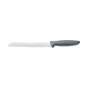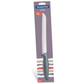 Leve mais estilo e bem-estar na hora de servir aquela receita de pão quentinho. A Faca para Pão Tramontina Plenus com Lâmina em Aço Inox e Cabo de Polipropileno Cinza 8 polegadas da Linha Plenus é uma peça essencial para as tarefas do dia a dia. Com lâmina de 8 polegadas produzida em aço inox, ela possui um confortável cabo em polipropileno na cor cinza. Ela é ideal para cortar pães sem amassá-los, facilitando as atividades diárias e levando mais bem-estar e comodidade para sua casa. Linha Tramontina Plenus: o melhor para sua cozinha! Orientações A lâmina serrilhada corta sem amassar.A lâmina de aço inox têm maior durabilidade do fio devido ao tratamento térmico. O cabo de polipropileno possui maior resistência e durabilidade. Pode ir à máquina de lavar louças facilitando seu dia a dia. Observações Antes da primeira utilização, lave bem a peça e seque-a. Produto cortante e perfurante: tenha cuidado ao manusear e mantenha fora do alcance das crianças. Para maior durabilidade do produto recomenda-se secar bem antes de guardar, mesmo após lavagem em máquina. Recomenda-se o uso de tábuas de polipropileno ou madeira da Tramontina para maior durabilidade do fio da faca. Não é indicado o uso da faca para o corte de alimentos congelados. Para descarte dos produtos e embalagens siga as orientações de reciclagem vigentes. Características Gerais EAN13 7891112225152 DUN14 17891112225159 NCM 8211.92.10 Peso Líquido 0,0746 kg. Peso Bruto 0,0990 kg. Metragem 0,000645 m³. Dimensões Embalagem (Compr. X Larg. X Alt.) 22x 77x 381 mm. Dimensões Produto (Compr. X Larg. X Alt.) 322x 34x 18 mm. Cor 1 53565A Hexa