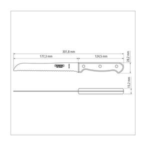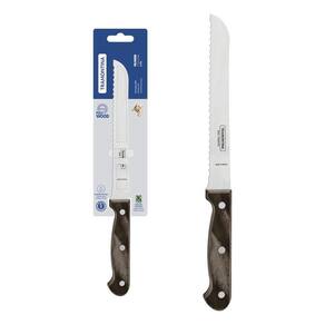 Faca Para Pão Tramontina Polywood Com Lamina Em Aço Inox E Cabo De Madeira Castanho 7" Faca para Pão Tramontina Polywood com Lâmina em Aço Inox e Cabo de Madeira Castanho 7 Um item que não pode faltar na sua cozinha é a Faca para Pão Tramontina Polywood com Lâmina em Aço Inox e Cabo de Madeira Castanho 7 polegadas da Linha Polywood. Ela irá proporcionar dias ainda mais prazerosos e práticos. Com uma lâmina em aço inox, que recebe tratamento térmico, e fio serrilhado que facilita o corte do pão sem amassá-lo, ela garante toda a resistência que só a Tramontina pode oferecer. O seu cabo é produzido em madeira tratada Polywood, ou seja, ele permite um manuseio seguro e confortável, sem deixar de lado a durabilidade. Além de contar com resistência à impactos e altas temperaturas.