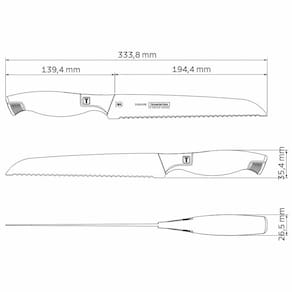 INFORMAÇÕES GERAIS DA FACA DE PÃO TRAMONTINA 8" - A lâmina serrilhada corta sem amassar o seu pão. -Lâmina e cabo de aço inox que mantém suas características garantindo durabilidade e higiene. -A lâmina de aço inox têm maior durabilidade do fio devido ao tratamento térmico. -Pode ir à máquina de lavar louças facilitando seu dia a dia.