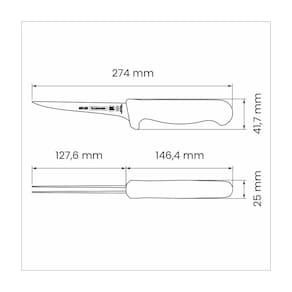 Qualidade e durabilidade para profissionais que trabalham muito. Com tecnologia de ponta, as facas profissionais estão sempre preparadas para entrar em ação e fazer bonito com qualquer ingrediente. Eficiência é o que não falta. A altíssima qualidade das lâminas, resultado do tratamento térmico composto por têmpera (aquecimento da lâmina), subzero (resfriamento de 50 a 196 graus negativos) e revenimento (aumento da elasticidade do aço) garante vida longa e eficiente. A anatomia e ergonomia do cabo de polipropileno texturizado, injetado diretamente sobre a espiga da lâmina, oferecem segurança e conforto durante o manuseio. A proteção antimicrobiana inibe e reduz o crescimento de bactérias e fungos. Essa tecnologia é incorporada durante o processo de fabrição do cabo e dura por toda vida útil do produto, mas não não elimina a necessidade de lavá-los.