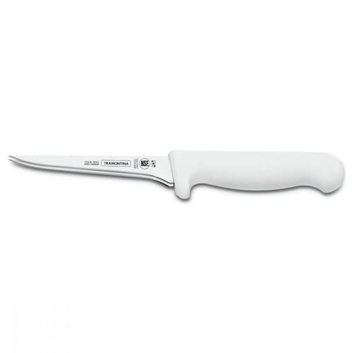 Lâmina de aço inox DIN 1.4110.Cabo de polipropileno. Qualidade e durabilidade para profissionais que trabalham muito. Com tecnologia de ponta, as facas profissionais estão sempre preparadas para entrar em ação e fazer bonito com qualquer ingrediente. Eficiência é o que não falta. A altíssima qualidade das lâminas, resultado do tratamento térmico composto por têmpera (aquecimento da lâmina), subzero (resfriamento de 50 a 196 graus negativos) e revenimento (aumento da elasticidade do aço) garante vida longa e eficiente. A anatomia e ergonomia do cabo de polipropileno texturizado, injetado diretamente sobre a espiga da lâmina, oferecem segurança e conforto durante o manuseio. A proteção antimicrobiana inibe e reduz o crescimento de bactérias e fungos. Essa tecnologia é incorporada durante o processo de fabrição do cabo e dura por toda vida útil do produto, mas não não elimina a necessidade de lavá-los.