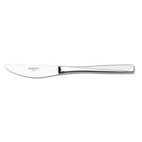 Faca para sobremesa Dallas. Orientações 1. Totalmente feita de aço inox, altamente durável, mantém suas características originais, preservando a beleza, a higiene e a durabilidade do material. 2. Faca com lâmina temperada, que garante maior durabilidade no fio de corte e maior resistência à corrosão, e por sua característica de temperabilidade, não risca as porcelanas. 3. O cabo da faca se adapta melhor a palma da mão. 4. Possui equilíbrio harmônico entre o cabo e a lâmina. 5. Com design diferenciado e moderno, acabamento em alto brilho e faixa satinada. 6. Pode ser lavada diariamente na máquina de lavar louças. Observações Use apenas sabão ou detergente e uma esponja macia. Outros tipos de produtos, como palha de aço, poderão riscar ou prejudicar o brilho dos talheres. Enxágue bem cada peça a fim de remover totalmente os resíduos dos produtos de limpeza, que, por serem abrasivos, podem atacar o inox. Sempre que possível, use água quente, pois renova o brilho do talher. Após a lavagem, enxugue imediatamente os talheres, caso contrário, as substâncias químicas da água (cloro) poderão causar manchas. Evite atrito entre os talheres durante o processo de lavagem e no armazenamento, para mantê-los sem riscos. Evite o contato das peças com superfícies quentes. Elas provocam a descoloração do produto. Não guarde os talheres em locais úmidos. A umidade também provoca manchas.Qualquer faca, independentemente de marca, para manter o fio de corte, é fabricada em aço com maior teor de carbono e, por isso, é menos resistente à corrosão. Assim, pedimos uma atenção especial para este artigo, pois estará mais propenso aos problemas citados. Usando máquina de lavar louças Não carregue em demasia a cesta dos talheres. Separe bem as peças, pois o contato permanente entre as mesmas, durante a secagem, poderá causar manchas. Retire os talheres logo que tenha terminado o ciclo "enxaguar", a fim de que os mesmos sejam secados manualmente. Características Gerais EAN13 7891116128572 DUN14 17891116128579 NCM 8211.91.00 Peso Líquido 0,0530 kg. Peso Bruto 0,0530 kg. Metragem 0,000036 m³. Dimensões Embalagem (Compr. X Larg. X Alt.) 199x 20x 9 mm. Dimensões Produto (Compr. X Larg. X Alt.) 199x 20x 9 mm. Espessura 8,0 mm.
