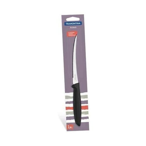 Nada como facas que facilitam nossa vida e tornam os momentos na cozinha mais práticos. A Faca para Tomate Tramontina da Linha Plenus deixa as tarefas diárias mais especiais. Criada para cortar tomates, sua lâmina microsserrilhada rompe a pele do tomate sem amassar. Produzida com a qualidade do aço inox, a lâmina de 5 polegadas é resistente e funcional. A faca possui ainda um confortável cabo de polipropileno na cor preta.