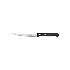 A Faca para Tomate Tramontina Ultracorte com Lâmina em Aço Inox e Cabo de Polipropileno Preto 5 Polegadas torna o dia a dia mais prático e saboroso. Criada para facilitar o corte do tomate, ela possui lâmina de aço inox microsserrilhada que rompe a pele do tomate sem amassar. É uma peça durável e muito resistente. O cabo de polipropileno na cor preta torna o uso mais confortável. É uma faca com lâmina de cinco polegadas, fácil de limpar e que pode ser lavada na máquina de lavar louças. Orientações A lâmina microsserrilhada rompe a pele do tomate sem amassar. A lâmina de aço inox têm maior durabilidade do fio devido ao tratamento térmico. O cabo de polipropileno possui maior resistência e durabilidade. E conta com proteção antimicrobiana, que inibe e reduz o crescimento de bactérias e fungos proporcionando benefícios em higiene e redução de microorganismos que causam contaminação. Esta ação dura por toda a vida útil dos produtos, mas não elimina a necessidade de limpeza.Rebites de alumínio.Pode ir à máquina de lavar louças facilitando seu dia a dia. Características Gerais EAN13 7891112261785 DUN14 17891112261782 NCM 8211.92.10 Peso Líquido 0,0290 kg. Peso Bruto 0,0400 kg. Metragem 0,000214 m³. Dimensões Embalagem (Compr. X Larg. X Alt.) 270x 66x 12 mm. Dimensões Produto (Compr. X Larg. X Alt.) 232x 21x 12 mm. Cor 1 000000 Hexa Observações Antes da primeira utilização, lave bem a peça e seque-a. Produto cortante e perfurante: tenha cuidado ao manusear e mantenha fora do alcance das crianças. Para maior durabilidade do produto recomenda-se secar bem antes de guardar, mesmo após lavagem em máquina. Recomenda-se o uso de tábuas de polipropileno ou madeira da Tramontina para maior durabilidade do fio da faca. Não é indicado o uso da faca para o corte de alimentos congelados. Para descarte dos produtos e embalagens siga as orientações de reciclagem vigentes.