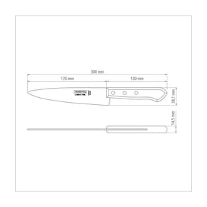 Faca Peixeira/cozinha 7" Faca Peixeira/Cozinha 7 As facas das linhas Carbono têm lugar certo em sua cozinha. O toque da natureza é dado por cabos rústicos de madeira, todos finalizados com rebites de alumínio. O poder de corte é garantido pelo tratamento térmico aplicado às lâminas de de aço carbono finalizadas com verniz protetor.