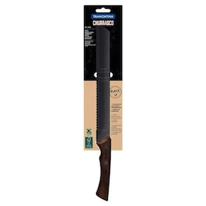 Lâmina de aço inox com maior durabilidade do fio devido ao tratamento térmico. Cabo de madeira natural com rebites de alumínio.