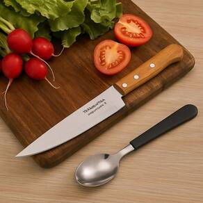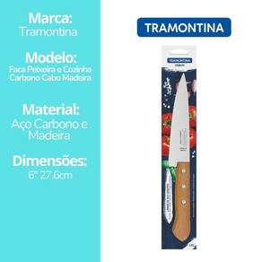 A qualidade do seu prato está relacionada com as suas habilidades culinárias, mas também com utensílios adequados e de qualidade. E para garantir isso, a faca peixeira e cozinha Tramontina com lâmina em aço carbono com cabo de madeira 6 polegadas é a escolha certa! Uma faca com alto desempenho de corte, pois é produzida com lâmina em aço carbono que conta com cabo de madeira com rebites de alumínio, que dão um toque rústico e garantem maior resistência e durabilidade. Uma faca especial, com a qualidade Tramontina que você já conhece e confia!