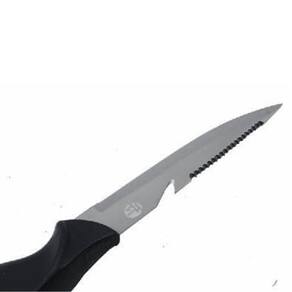 Faca Fileteira com a lâmina em aço inoxidável, com revestimento em teflon de alta qualidade. Novo cabo ergonômico, com maior aderência e segurança. Especial para preparo de filé Sashimi entre outros. Possui lamina serrilhada para escamar e abrir peixes com maior facilidade.