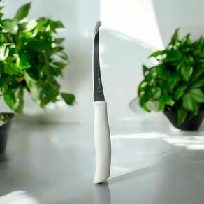 Faca Inox Pro 5 De Tomate Inox 3 cm A Faca Pro 5 de Tomate Inox 3 cm é uma faca especializada para cortar tomates com precisão e facilidade. A lâmina de 3 cm de comprimento é feita em aço inoxidável, o que garante resistência à corrosão, durabilidade e fácil manutenção. Medidas Aproximadas do Produto: - Largura: 6 cm; - Comprimento 23 cm; Marca: Não Informado