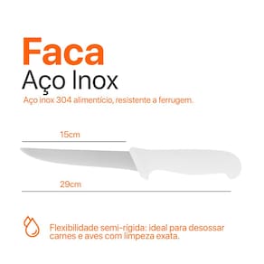 Fabricada em aço inox de alta resistência, a faca possui 6 polegadas de comprimento, sendo ideal para separar carne dos ossos com precisão. O cabo em polipropileno foi desenvolvido para proporcionar conforto e segurança durante o uso contínuo, sendo altamente resistente a impactos e ao calor.