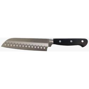 Faca Santoku 7 Estojo Case Courinho Presente Veja a linda embalagem para presente, carregar ou impressionar, feita de material sintético preto e revestida com dimensões de 45 x 8 x 5 cm fechamento com zíper. Modelo Santoku - Cortar, Picar, Fatiar Cabo Abs preto Bem balanceada, consistente em seu peso. Lamina inteiriça sendo em todo cabo. Cor: Preto Comprimento da lamina:17,8 cm Marca: Não Informado