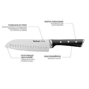 Experimente a excelência culinária com a Faca Santoku Aço Inox Tefal 18cm Ice Force, um produto de alta qualidade da marca Tefal.