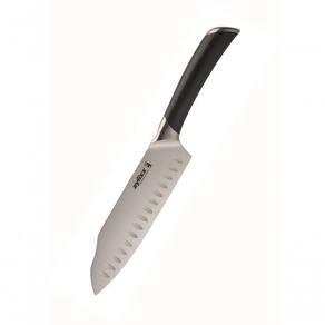Faca Santoku Comfort Pro Em Inox 18cm Zyliss As facas Zyliss Comfort PRO apresentam lâmina de aço inoxidável alemão de alto desempenho. A lâmina é endurecida com gelo o que comprovadamente retém o fio, permanecendo mais afiada por mais tempo. Projetado para durar, o robusto aço inoxidável alemão pode suportar até os produtos mais difíceis.Uma faca perfeitamente equilibrada com construção inteiriça e um cabo contornado que proporciona o máximo conforto e agilidade no uso, para um trabalho seguro e sem fadiga. O design full tang garante que a faca esteja perfeitamente equilibrada para a melhor experiência de corte.Faca de cozinha profissional para todos os fins um design mais inteligente e eficaz, estas facas podem ser usadas para preparar alimentos de forma mais rápida e eficiente graças a um cabo contornado com uma aderência antiderrapante.Lâmina de aço Alemão ultra afiada permanece mais afiada por mais tempo. A lâmina afunilada desliza facilmente através de produtos resistentes e macios e é robusta o suficiente para suportar a maquina de lavar louças para limpeza rápida e fácil.Ficha técnica:- Código: 4088590653- Marca: Zyliss- Modelo: Comfort Pro- Conteúdo da Embalagem: 1 Faca Santoku- Especificações do produto:Vai a lava louçasApoie o dedo na lâmina para melhor balanceamento e controle do corteRecuo para o polegar para conforto e precisão do corteLâminas com tecnologia full tang que a deixa com maior equilíbrioLâminas em Aço AlemãoCabo confortável e aderente que se adequa a qualquer tamanho de mão- Material: Aço inox- Peso: 0,336kg- Dimensões: 38,3cm x 2,7cm x 8,2cm (AxLxP)- Garantia: 25 anos