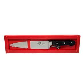 Com um cabo preto elegante e confortável em madeira, oferece um manuseio seguro e firme durante o uso. Seja na preparação de carnes suculentas, legumes frescos ou deliciosos pratos gourmet, esta faca é a aliada confiável que você precisa na sua cozinha.