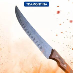 Faca Tramontina Butcher Churrasco Black Aço Inox 10 Com Tabua Madeira Com a faca para carne Tramontina Churrasco Black com lâmina em aço inox escurecido e cabo de madeira 10 polegadas ficou muito mais prático servir as melhores carnes no seu churrasco e com a garantia de um corte de alta qualidade. Produzida com lâmina de aço inox escurecido com excelente afiação, ela é ideal para cortes maiores. Sua lâmina conta com sulcos que minimiza o seu atrito com a carne. O cabo em madeira com rebites proporciona um manuseio muito mais firme e confortável, além de um estilo diferenciado. Escolha Tramontina e veja a praticidade tomar conta do seu dia a dia Ean: 7903457999671