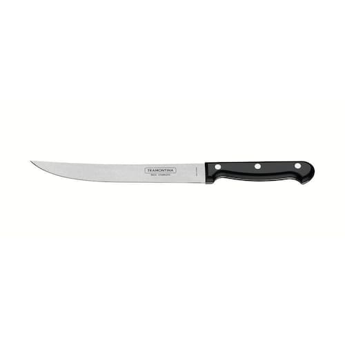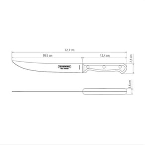 Antes da primeira utilização, lave bem a peça e seque-a. Produto cortante e perfurante: tenha cuidado ao manusear e mantenha fora do alcance das crianças. Para maior durabilidade do produto recomenda-se secar bem antes de guardar, mesmo após lavagem em máquina. Recomenda-se o uso de tábuas de polipropileno ou madeira da Tramontina para maior durabilidade do fio da faca. Não é indicado o uso da faca para o corte de alimentos congelados. Mantenha sempre sua faca afiada utilizando os afiadores da Tramontina.Para descarte dos produtos e embalagens siga as orientações de reciclagem vigentes.