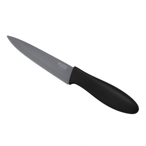 A Faca Utility 5” Titanium Black Yuze é a escolha perfeita para quem busca cortes precisos e praticidade no preparo das refeições. Com lâmina de 12,7 cm em aço inoxidável revestida em titanium, não oxida, não deixa gosto metálico nos alimentos e garante alta durabilidade.