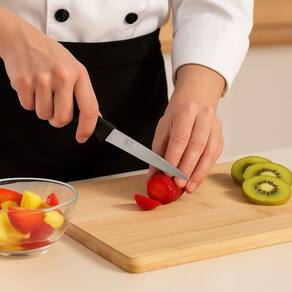 O design especial da lâmina evita que os alimentos grudem, facilitando a limpeza e tornando o dia a dia muito mais ágil. O cabo soft touch é confortável e antiderrapante, proporcionando segurança e equilíbrio ao cortar carnes, legumes e verduras.