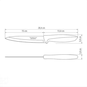 Pode ir à máquina de lavar louças facilitando seu dia a dia.Características GeraisEAN137891112226050DUN1417891112226057NCM8211.92.10Peso Líquido0,0650 kg.Peso Bruto0,0800 kg.Metragem0,000460 m.Dimensões Embalagem (Compr. X Larg. X Alt.)22x 61x 343 mm.Dimensões Produto (Compr. X Larg. X Alt.)284x 34x 18 mm.Cor 1000000 HexaObservações