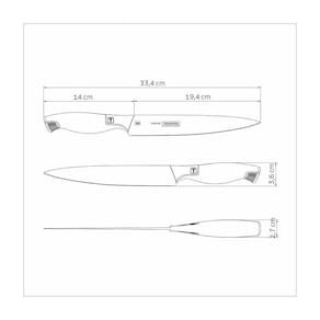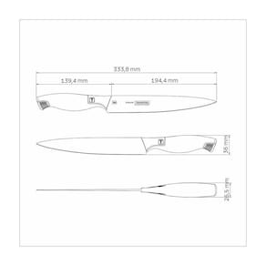 Lâmina e cabo de aço inox que mantém suas características garantindo durabilidade e higiene.