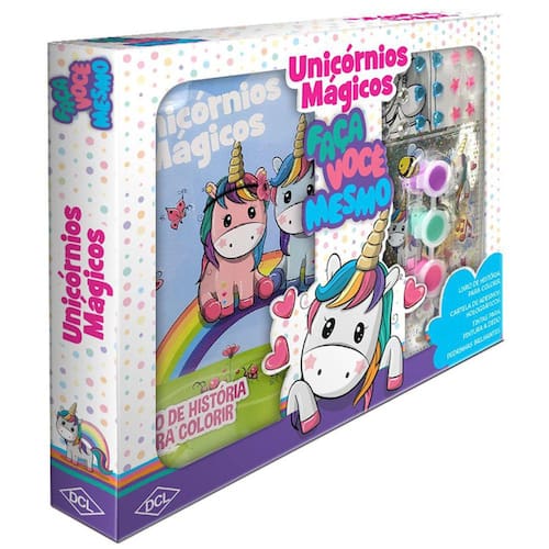 Kit Faça Você Mesmo! Superdivertido! Divirta-se com as canetinhas para colorir, os adesivos para colar e brincar e um livro de historias para ler e se emocionar.