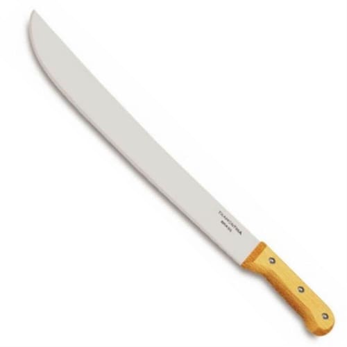 Informações Gerais: - Lâmina de aço carbono com tratamento térmico especial que proporciona maior dureza, resistência do fio e maior poder de corte. - Lamina com aplicação de uma camada de verniz como revestimento protetivo, a qual possui a função de proteção durante as etapas de transporte, armazenamento e primeiros usos. - Cabo de madeira rebitado que garante maior segurança, ergonomia perfeita e conforto no manuseio. - Rebites de alumínio.
