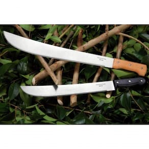 - Lâmina com Maior durabilidade do fio Devido ao tratamento térmico.- A lâmina recebe um acabamento lixado com um revestimento em verniz, que lhe confere uma maior resistência.- Lâmina em aço carbono 12 com fio liso.- Cabo fixado por pregos de alumínio.- Cabo de Polipropileno com mais resistência e durabilidade.