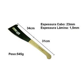 Facão Podão Para Cortar Cana 65Cm Lâmina Peito De Pomba Facão kukri bellota duas caras 14 polegadasO facão cana bellota pombo é utilizado para corte manual da cana de açúcar demais atividades de corte de vegetação no campo. Possui lâmina temperada e revenida integralmente, garante maior flexibilidade, não quebra e mantém o fio de corte por mais tempo. Cabo fixado à lâmina com quatro rebites macho/fêmea de fixação para maior segurança do usuário. Características: - aço sae 1074. - formato especial da lâmina para trabalho em solos pedregosos. - design da lâmina dificulta o contato da ponta com o solo ou pedra. - gancho com formato especial para tirar a palha da cana sem desvio do corte. - afiação especial. - lâmina com dureza de 48 - 52 hrc. - dimensões equilibradas e balanceadas. - cabo ergonômico em madeira de primeira qualidade. - para corte de cana de açúcar e demais vegetações - lâmina temperada e revenida, corte mais preciso e durável. - formato anatômico e prático do cabo para maior conforto do operador. Descrição - facão para cana lamina peito de pomba - marca: duas caras - tamanho da lamina: 340 mm - espessura da lâmina: 1,5 mm - comprimento total: 650 mm - tamanho do cabo: 310 mm - com cabo de madeira - produto de alta qualidade - produto pré afiado - material: aço e madeira
