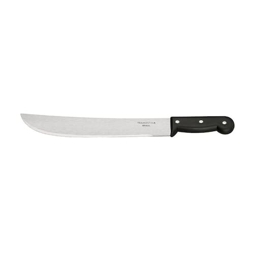 Orientações Gerais Uso seguro e adequado: Tenha cuidado ao manusear produtos cortantes e perfurantes e mantenhaos fora do alcance de crianças. Para garantir a durabilidade dos produtos, recomendase secálos bem após a lavagem. Benefícios do Produto 1. Lâmina com maior durabilidade do fio devido ao tratamento térmico. 2. A lâmina recebe um acabamento lixado com um revestimento em verniz, que lhe confere uma maior resistência. 3. Cabo de polipropileno com mais resistência e durabilidade. 60cm x 5cm. Ean: 7891112011021