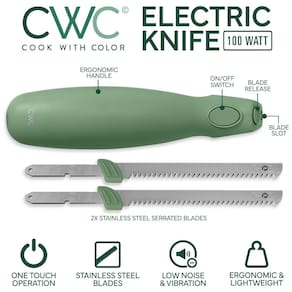 Apresentamos a Faca Elétrica COOK WITH COLOR, uma adição poderosa e versátil para sua cozinha, projetada para precisão e conveniência. Operando a 120V60Hz e 100W, esta faca elétrica oferece desempenho eficiente para todas as suas tarefas de corte. Com baixo ruído e vibração, proporciona uma experiência suave e confortável, enquanto os orifícios de ventilação ajudam a liberar calor para segurança e desempenho ideais. Equipada com uma lâmina de aço inoxidável, a Faca Elétrica COOK WITH COLOR é perfeita para cortar legumes, frutas, pães e muito mais. O aço inoxidável de alta qualidade garante nitidez duradoura, proporcionando cortes precisos e limpos sempre. O botão de liberação da lâmina facilita a troca de lâminas de forma rápida e sem complicações, e o cabo ergonômico garante uma pegada confortável e segura para fatiar com precisão. Projetada tanto para cozinhas domésticas quanto para restaurantes, esta faca elétrica é compacta, eficiente e fácil de armazenar. Por segurança, sempre insira a lâmina antes de conectar a faca. Assim que a lâmina estiver firmemente colocada, conecte e pressione o botão de ligar - o motor movimenta a lâmina para frente e para trás para cortar alimentos com facilidade. Seja para fatiar carne ou preparar legumes, a Faca Elétrica COOK WITH COLOR é a ferramenta perfeita para todas as suas necessidades culinárias. Em resumo, a Faca Elétrica COOK WITH COLOR combina um desempenho potente de 100W com um design fácil de usar, oferecendo baixo ruído, baixa vibração e um botão de liberação de lâmina simples. Com sua durável lâmina de aço inoxidável e cabo ergonômico, esta faca elétrica garante versatilidade e precisão tanto para uso doméstico quanto profissional.