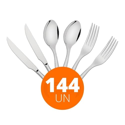 OBS: Veja na descrição os itens que acompanham o jogo. COMPONENTES DO KIT: 48 Faca para Churrasco Laguna em Aço Inox - Tramontina 63906180 48 Garfo de Mesa Laguna em Aço Inox - Tramontina 63906020 48 Colher de Sopa Laguna em Aço Inox - Tramontina 63906010 : 90 dias para vícios ou defeitos de fabricação Faca para Churrasco Laguna em Aço Inox - Tramontina 63906180 - Faca totalmente temperada; - Totalmente feita de aço inox; - Acabamento em brilho, com detalhes no cabo. - Pode ser lavada diariamente na máquina de lavar louças.- Peso Líquido: 0,043 kg. - Peso Bruto: 0,045 kg. - Dimensões Embalagem : 0,8cm A x 2cm L x 23cm P - Dimensões Produto : 0,3cm A x 1,8cm L x 21cm P - Espessura: 3,0 mm. Garfo de Mesa Laguna em Aço Inox - Tramontina 63906020 - Garfo com dentes polidos na parte interna; - Totalmente feito de aço inox; - Acabamento em brilho, com detalhes no cabo. - Pode ser lavado diariamente na máquina de lavar louças. - Peso Líquido: 0,032 kg. - Peso Bruto: 0,035 kg. - Dimensões Embalagem: 2cm A X 2,5cm L X 20cm P. - Dimensões Produto : 1,9cm A X 2,3cm L X 19,3cm P. - Espessura: 1,6 mm. Colher de Sopa Laguna em Aço Inox - Tramontina 63906010 - Colher com bojo em formato simétrico e bordas cuidadosamente arredondadas; - Totalmente feita de aço inox; - Acabamento em brilho, com detalhes no cabo. - Pode ser lavada diariamente na máquina de lavar louças. - Peso Líquido: 0,040 kg. - Peso Bruto: 0,041 kg. - Espessura inox: 1,8 mm. - Medida Externa : 19cm x 4,3cm concha Marca: Não Informado