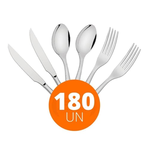 OBS: Veja na descrição os itens que acompanham o jogo. COMPONENTES DO KIT: 60 Faca para Churrasco Laguna em Aço Inox - Tramontina 63906180 60 Garfo de Mesa Laguna em Aço Inox - Tramontina 63906020 60 Colher de Sopa Laguna em Aço Inox - Tramontina 63906010 : 90 dias para vícios ou defeitos de fabricação Faca para Churrasco Laguna em Aço Inox - Tramontina 63906180 - Faca totalmente temperada; - Totalmente feita de aço inox; - Acabamento em brilho, com detalhes no cabo. - Pode ser lavada diariamente na máquina de lavar louças.- Peso Líquido: 0,043 kg. - Peso Bruto: 0,045 kg. - Dimensões Embalagem : 0,8cm A x 2cm L x 23cm P - Dimensões Produto : 0,3cm A x 1,8cm L x 21cm P - Espessura: 3,0 mm. Garfo de Mesa Laguna em Aço Inox - Tramontina 63906020 - Garfo com dentes polidos na parte interna; - Totalmente feito de aço inox; - Acabamento em brilho, com detalhes no cabo. - Pode ser lavado diariamente na máquina de lavar louças. - Peso Líquido: 0,032 kg. - Peso Bruto: 0,035 kg. - Dimensões Embalagem: 2cm A X 2,5cm L X 20cm P. - Dimensões Produto : 1,9cm A X 2,3cm L X 19,3cm P. - Espessura: 1,6 mm. Colher de Sopa Laguna em Aço Inox - Tramontina 63906010 - Colher com bojo em formato simétrico e bordas cuidadosamente arredondadas; - Totalmente feita de aço inox; - Acabamento em brilho, com detalhes no cabo. - Pode ser lavada diariamente na máquina de lavar louças. - Peso Líquido: 0,040 kg. - Peso Bruto: 0,041 kg. - Espessura inox: 1,8 mm. - Medida Externa : 19cm x 4,3cm concha Marca: Não Informado