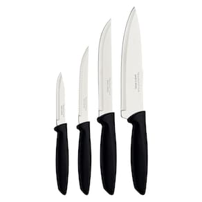O jogo de facas Tramontina Plenus com lâminas em aço inox e cabos de polipropileno preto 04 peças será seu ajudante perfeito na hora de preparar suas refeições, sejam elas com carnes, legumes ou frutas. Perfeito para uso diário, ele é composto por facas desenvolvidas com lâminas em aço inox com tratamento térmico e devido a isso, garantem um excelente fio de corte. Os cabos são em polipropileno na cor preta, são resistentes e duráveis, podendo ainda, ir à máquina de lavar louças. Escolha Tramontina e deixe seu dia a dia na cozinha muito mais prático!