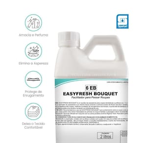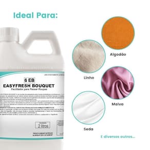 Easyfresh bouquet suporta alta temperatura 200c , otimizando o efeito passa fácil, reduzindo a eletricidade estática dos tecidos, garantindo a sensação de bem-estar ao usuário.