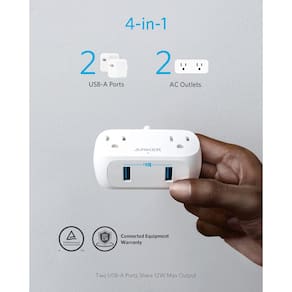 Um para todos: equo com 2 tomadas AC e 2 portas de carregamento USB habilitadas para PowerIQ para fornecer energia para até 4 dispositivos simultaneamente.