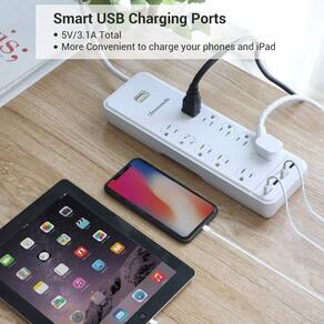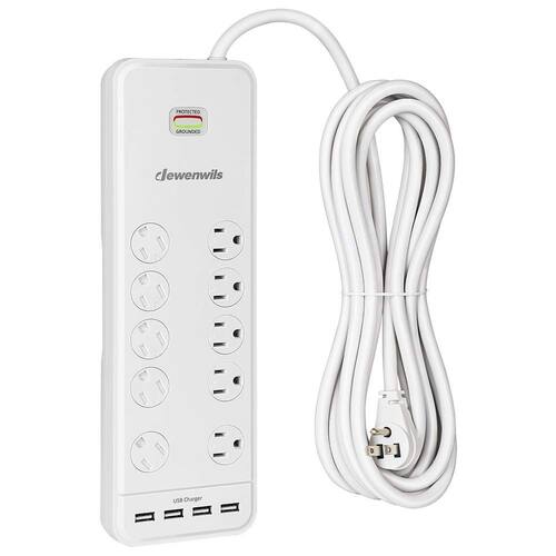 10 tomadas AC aterradas com 2 tomadas amplamente espaçadas para plugues mais volumosos, ideais para uso doméstico ou no escritório; 4 portas USB ajudam você a carregar seu iPhone, kindle, tablets, iPad e iPod para garantir que seus eletrônicos estejam sempre prontos para uso.