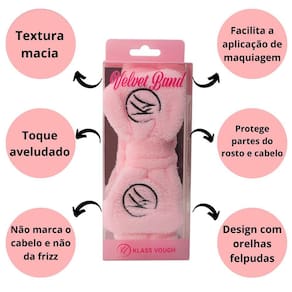 Proteja seus cabelos com a Faixa Para Maquiagem E Skin Care Velvet Band! Sua rotina de Skin Care com mais conforto e facilidade. A Velvet Band é uma faixa com uma textura macia por seu toque aveludado e com elasticidade, ela não marca o cabelo e não causa friz. Um acessório ideal também para facilitar a aplicação de maquiagem, protegendo partes do rosto e cabelo com praticidade. Possui um design com orelhas felpudas, ampla que suporta todos os tipos, estilos e comprimentos de cabelos.
