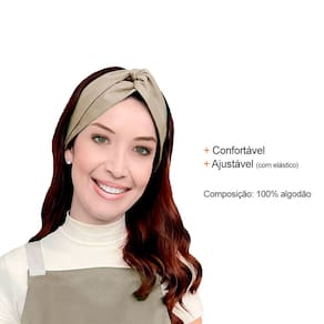 Faixa de Cabelo Turbante Bandana Bege Chef Cozinha Bar Spa