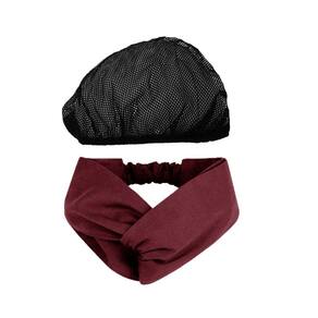 Faixa de Cabelo Turbante Vinho e Touca Redinha Preta Cozinha