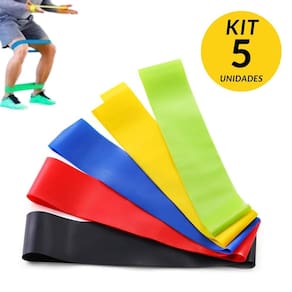 Kit de 5 Faixas Elásticas para Fisioterapia e Exercícios de Fortalecimento na Academia