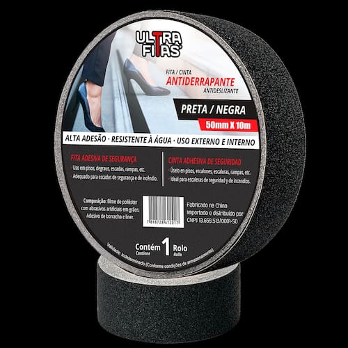 Fita antiderrapante ULTRA FITAS: Indicada para uso interno e externo graças a alta resistência à água e corrosão, com espessura e aderência equiparada às melhores do mercado.