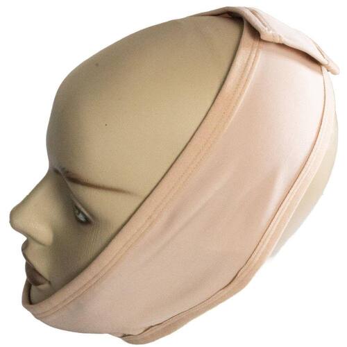 Produto: faixa para bichectomia com suporte para gelox Marca: New Form Composição: 79% de poliamida e 21% de elastano Indicações: cirurgia facial, otoplastia cirurgia de orelha Cor: chocolate Gênero: Unissex Registro ANVISA: 81547300001