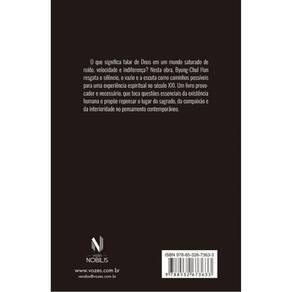 Nesta obra, Byung-Chul Han resgata o silêncio, o vazio e a escuta como caminhos possíveis para uma experiência espiritual no século XXI. Um livro provocador e necessário, que toca questões essenciais da existência humana e propõe repensar o lugar do sagrado, da compaixão e da interioridade no pensamento contemporâneo.