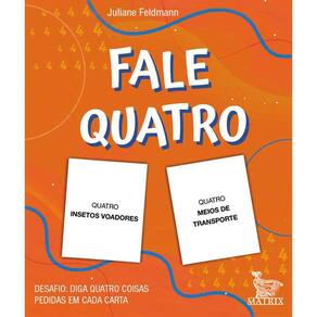 Este livro-caixinha® é ideal para ampliar o vocabulário, melhorar o raciocínio, a memória e a escrita. Cada carta propõe um tema. A criança precisa dizer ou escrever quatro coisas relacionadas a cada um desses temas. Por exemplo: quatro animais mamíferos, quatro frutas, quatro coisas que existem num carro, e por aí vai. São 40 cartas no total. Vai ser divertido. E muito instrutivo.