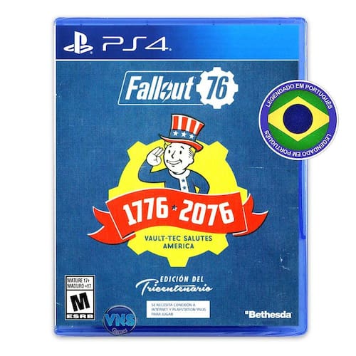 Celebre 300 anos de independência com o novo Fallout 76 Edição Tricentenária, comemorando a abertura do Refúgio 76. Saia do Refúgio 76 totalmente preparado e estilizado patrioticamente na nova fronteira americana! A Edição Tricentenária inclui o jogo e itens bônus digitais no jogo: personalização Tricentenária de Armas e Armadura Potente, Bela Cabeça do Mascote Vault Boy, Roupa Patriota do Tio Sam, Avatar Comemorativo do Vault Boy Em Saudação, Pôsteres de Oficinas Tricentenárias de Primeira Classe e Moldura de Foto Tricentenária Comemorativa!