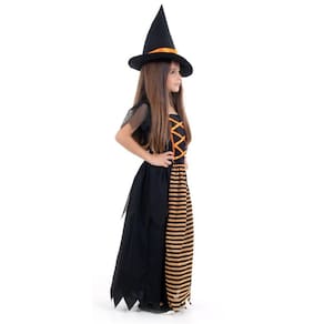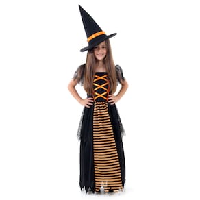 Esta é a oportunidade perfeita para sua criança explorar o mundo das bruxas e feitiços de maneira encantadora e autêntica. Nossa Fantasia de Bruxa Laranja de Luxo para Crianças garantirá que ela se destaque com estilo e magia durante toda a festividade.