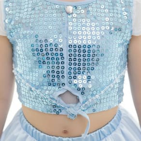 Linda fantasia autêntico da Princesa Cinderela, baseada no clássico da Disney "Cinderela - A gata borralheira". A fantasia é composta por um cropped com lantejoulas prensadas e um broche fixo no cropped, saia com elastico com duas camadas na saia, a primeira de tule e a segunda de cetim. Confira!!